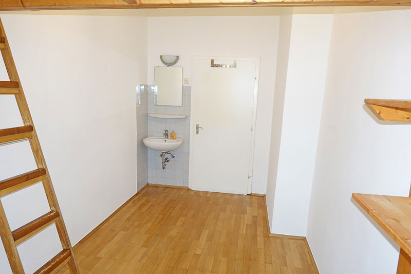 Im beliebten Neuhausen kann ich Ihnen dieses freundliche Einzelzimmer anbieten. Es ist bereits mit einem Galerieelement mit Hochbett, Schreibtisch, Regalen und Bürostuhl ausgestattet. Im Zimmer ist eine kleine Waschecke mit Waschbecken und Spiegel. Gemeinsam mit den beiden anderen Mietern der Etage (beides freundliche und ruhige Herren) benutzt man ein kleines, modernes Gemeinschaftsbad mit Badewanne, Handwaschbecken und WC sowie mit Fenster. Im Flur ist außerdem eine kleine Küchenzeile mit Kühlschrank, Cerankochfeld, Spüle, Hänge und Unterbauschränken zur gemeinsamen Nutzung neu eingebaut.