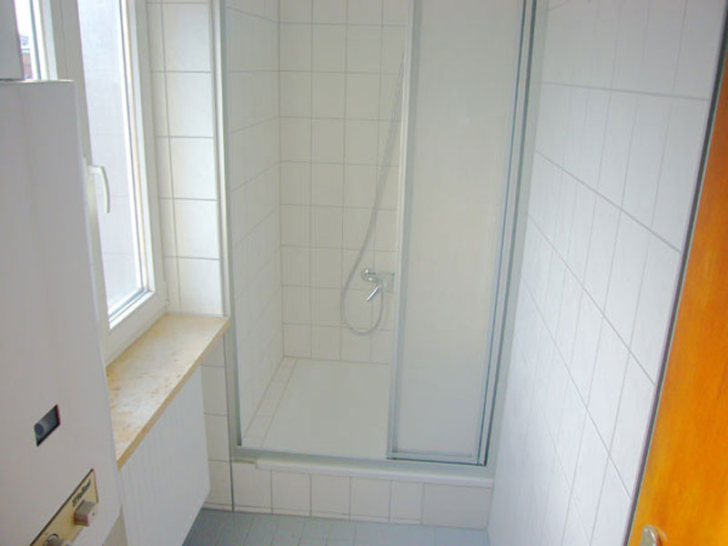 Im trendigen Westend können wir Ihnen dieses freundliche Einzelzimmer anbieten. Das Zimmer hat eine kleine Waschecke und ist mit einem großen Bett, Kleiderschrank, Sideboard. Hochtisch mit zwei Hockern, Geschirrschrank, Spiegelschrank, Vorhängen und Deckenlampe komplett möbliert. Gemeinsam mit den zwei anderen Mietern der Etage (beides freundliche und ruhige Herren) benutzt man eine Gemeinschaftsdusche und zwei separate Toiletten.